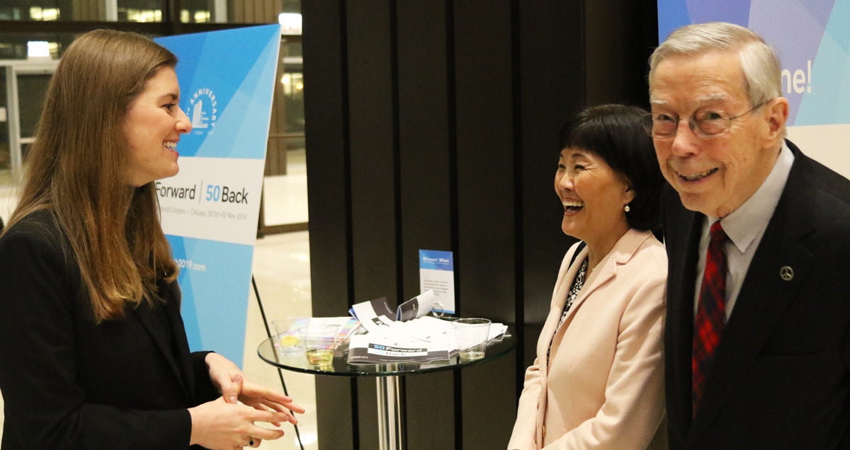 CHICAGO – Expanding on the broader theme of “50 Forward; 50 Back,” the first of four “lead-up” events to the CTBUH 10th World Congress took place at the Chicago Architecture Center, with more than 100 people in attendance. “Leaning Out and Looking Back with Les Robertson,” co-organized by the CTBUH headquarters and Chicago Chapter, presented a 55-minute documentary film about the life and career of Leslie Robertson, CTBUH Chairman from 1985 to 1990, principal of See Robertson Structural Engineers, and lead structural engineer of New York City’s original World Trade Center towers.