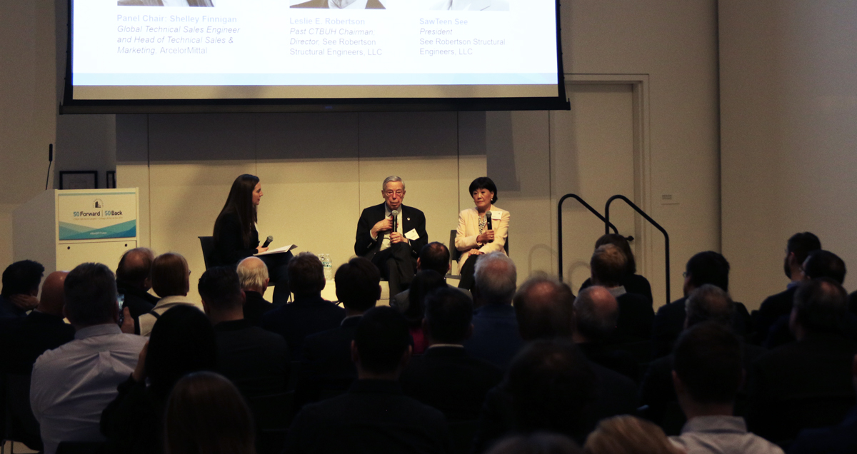 Both Robertson and See were on hand to answer questions, first in a structured Q & A session with CTBUH Chicago Chapter Chair Shelley Finnigan, Global Technical Sales Engineer and Head of Technical Sales & Marketing for ArcelorMittal; and then with the general audience.