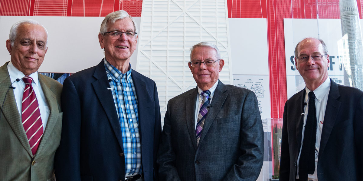 At one point, Baker showed a slide of the project team taken on the site, asking, “How old are these people?” Graham was 40; Khan, 35; the three men on the stage were in their mid-20s. “They often said the Hancock was built by kids,” Smits quipped. “That’s not far from the truth.”