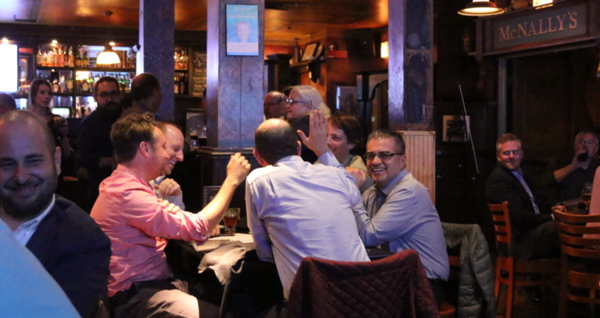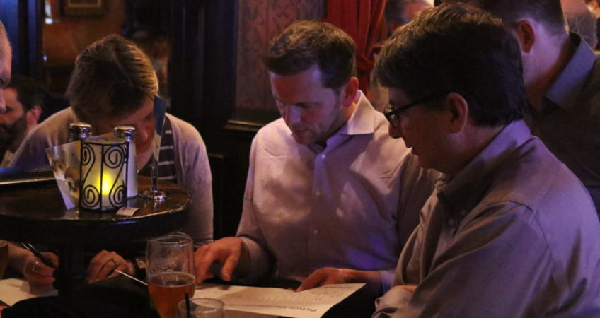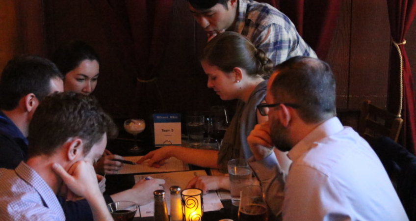 The event took place at Fado’s Irish Pub in downtown Chicago, and a full house of participants filed in before the official start time of 5:30 to enjoy happy hour food and drink specials. After the event kicked off, team members could be seen huddled in deep concentration as they tried to determine their final answers. The two-hour trivia consisted of plenty of variety with the intent of highlighting the expertise of different individuals. Topics covered included the tallest building completed by a female lead architect, the founder of CTBUH, cities with the most 150-meter-plus buildings, and a round dedicated to identifying tall buildings using just their outlines. A subsequent round called on pop culture aficionados to name famous tall buildings from movies dating back to 1983.